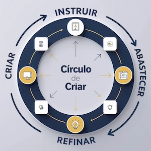Com o Círculo de Criar, você aprende o passo a passo pra ensinar sua IA a pensar, responder e agir como um assistente treinado pra você.