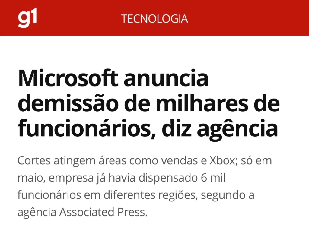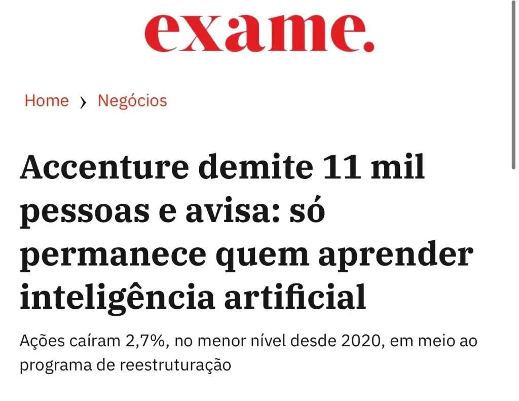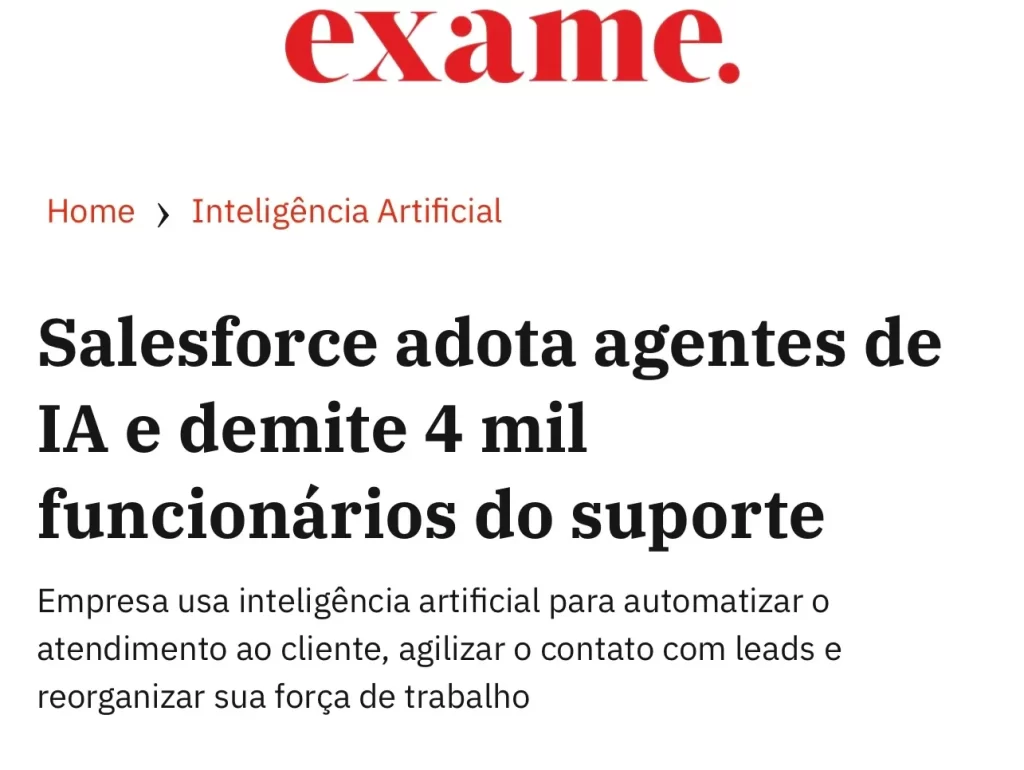 Nos últimos meses, gigantes como Microsoft, Accenture e SalesForce, já cortaram milhares de cargos substituídos por IA.